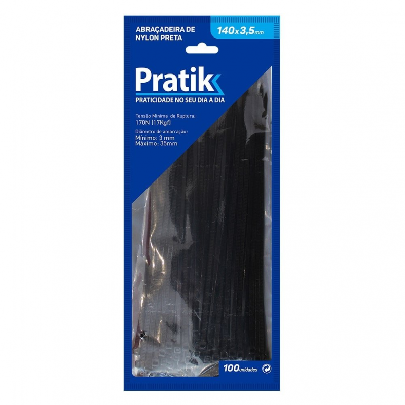 ABRAÇADEIRA DE NYLON PRATIK 140X3,5 PRETA 100 UND.