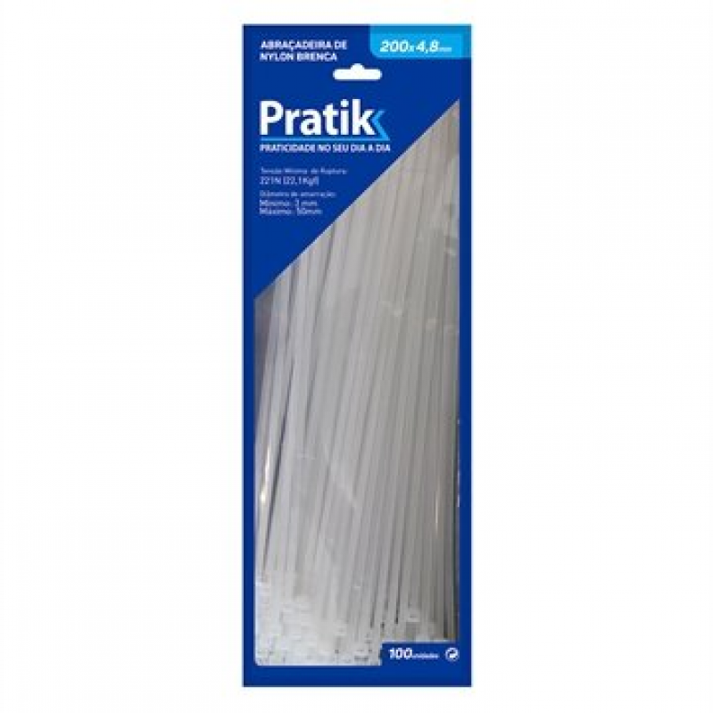 ABRAÇADEIRA DE NYLON PRATIK 200X4,8 BRANCA 100 UND.